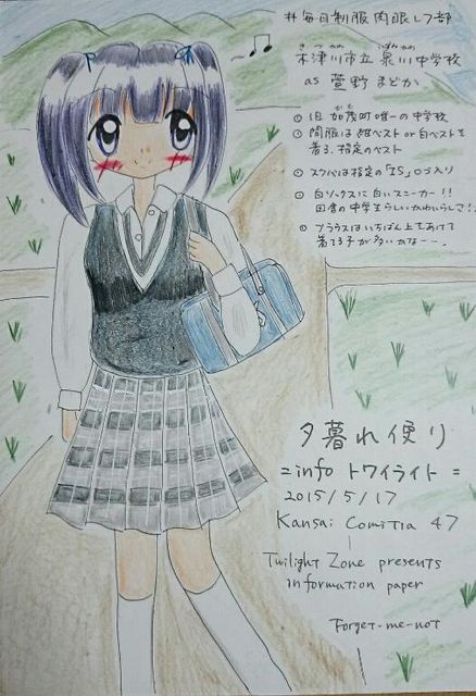 また、トワイライト・ゾーンは、創作サークルですので、今回の新刊は、ショートコミックでございます。机上にはショートコミックを並べるつもりです。実在制服本については、申付け頂ければ、お出し致しますので、お気軽にお声がけ下さい!