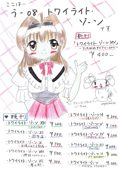 ※「トワイライト・ゾーンIX -たそがれダイアリー2010」、「トワイライト・ゾーンXII -AT RANDOM II」は、現在重版の予定がございませんので、今回は頒布いたしません。あらかじめご了承ください。