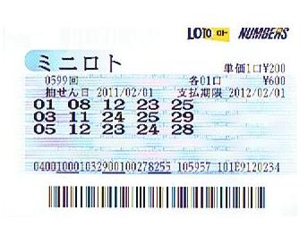 (3,872)【当選】第599回ミニロト&第3040回ナンバーズ3