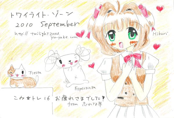 9月の「トワイライト・ゾーン」のTOPページのイラストを昨日更新しました。9月ももう11日も過ぎているというのに、いまさらになっての更新…。こみトレの原稿でギリギリまでかかってたからというと言い訳がましいので、これ以上は弁解しません。申し訳ない。