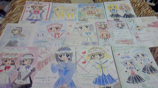 ちなみに、初めて描いた絵というのが、このmixiの中のアルバムに実は潜んでいたりもします。今に至るイラストの原点、初めて描いたのは、今のトワイライト・ガールのリーダー、しーちゃんでした。まだその当時は、あゆかさんの(当時から彼女をしーちゃんと呼んでた)扉絵のバイオリン娘を見ながら描いたのがあります。今ではお蔵入りにしたいくらいものですが…アルバムのどこかにあります…。記憶にある方もいると思います…。今思うとすごい絵でした…。