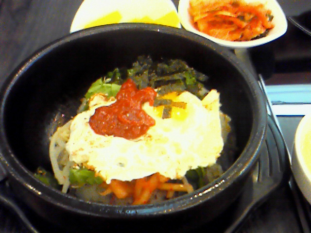 ソウルの北部、安国(アンググ)駅周辺から、明洞(ミョンドン)にかけての買い物通りから、明洞の中心街を歩き回って、お土産になりそうなものを僕もそこそこ買いあさり…。明洞のお店で昼ごはんにしたのですが、そこでやっと、石焼ビビンパを食べることに! 今まで韓国で食べてきた食べ物の中で、いちばん口にあうというか、とっても旨かったです。