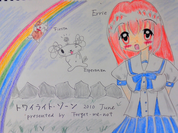 6月になりました。web「トワイライト・ゾーン」のTOPイラスト用のエリーちゃんです。6月は誕生月に当たるヒロインがいないので、梅雨空を晴れやかにしてくれる、夏服なエリーちゃんを登場させてみました。学校の制服っぽいお洋服ですが、エリーちゃんの私服ということで…。