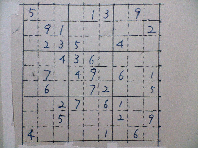 それで、この問題は、ブログ記事に掲載した過去の問題を掲載しました。時間があれば、正解のマトリクス(9×9に総て重複がないもの)を作成してから、問題を作成するという手順で作っていますが、問題を作るだけでもなかなか時間のかかる作業だったものですから…。