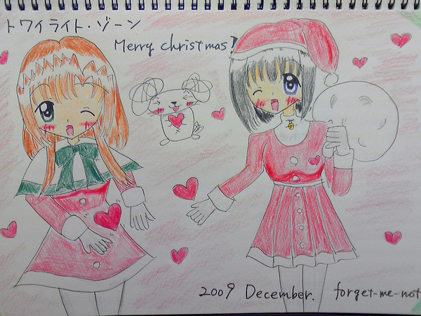 web「トワイライト・ゾーン」の12月のTOPイラストとして、載せた一枚です。毎月TOPイラストを更新しているのですが、12月はやっぱり、昨年同様、ヒロインの誰かをサンタガールにしてしまおう! ということで、今年はお姉さまの百合佳さんと、やよいちゃんをサンタガールに仕立ててみました。