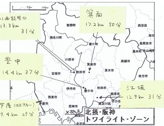 尼崎 → 箕面駅前 17.2km 50分 (伊丹本町、北村、石橋、牧落経由)