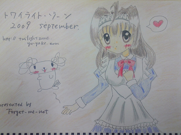 9月に入ってから、トレの原稿なんかで、web「トワイライト・ゾーン」のTop絵を更新ができていなかったので、9日になった今日になってようやく更新…。9月のTop絵は、メイドしーちゃん。何度かたびたび描いている、メイドなしーちゃんですが、描いてる当の本人も、このしーちゃんはかわいいなあ…などと思いつつ。