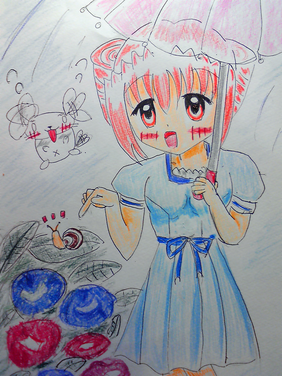 えり :「雨の降る日はこうやってお散歩しながら、癒しを求めてます♪ カタツムリさんも
